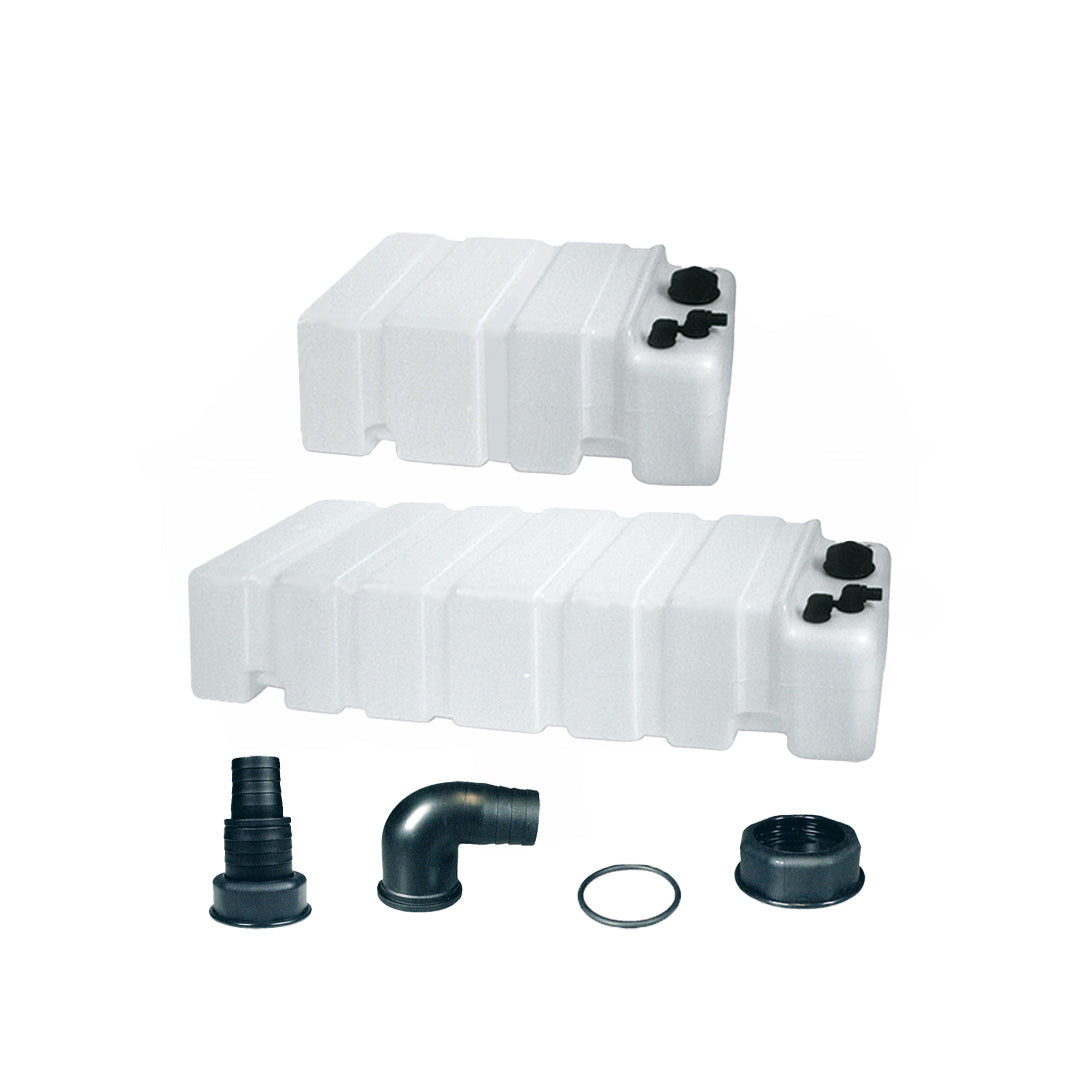 Serbatoio acqua in polietilene bianco completo di tappo carico, pescante e sfiato.