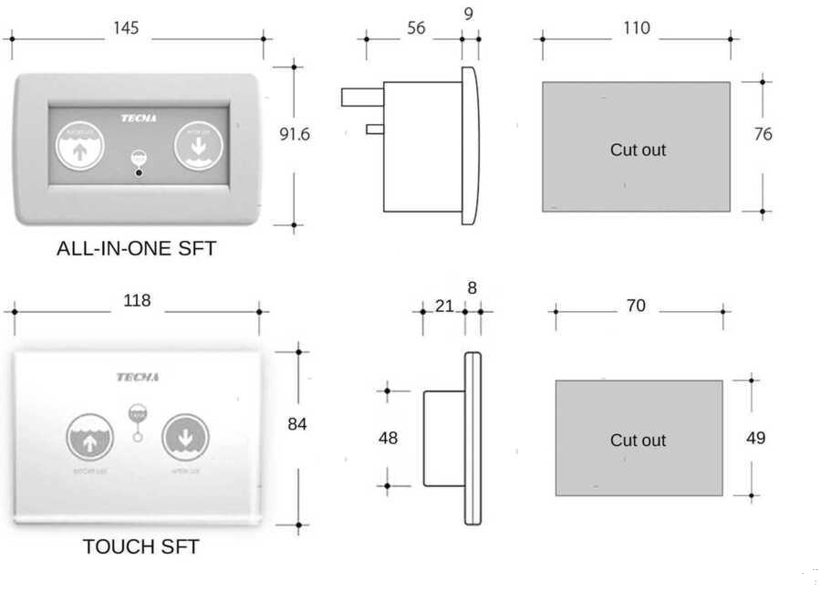 Pannello Touch SFT: pannello touch carico/scarico con tecnologia Smart Flush che riduce consumi e rumore, spia monitoraggio serbatoio acque nere e protezione fuoriuscita acqua di carico con programmazione del flusso. Selezionabile per modalità crociera oppure banchina.